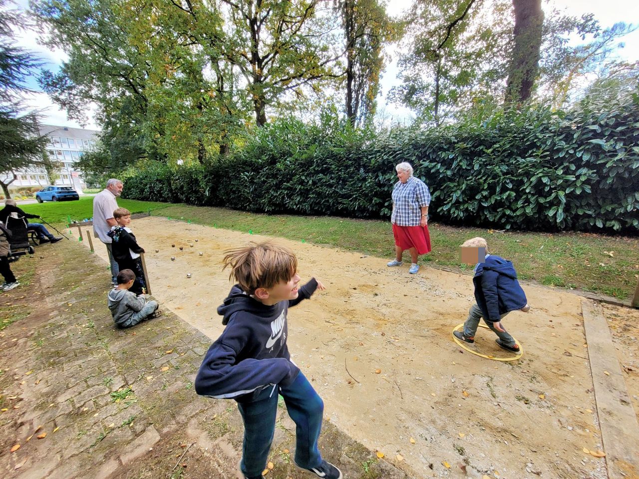 Aujourd'hui, les CP CE1 ont clôturé leur séquence pétanque par une rencontre avec les résidents de la Pommeraie. Ça a tiré ! Ça a pointé ! Sous des applaudissements !