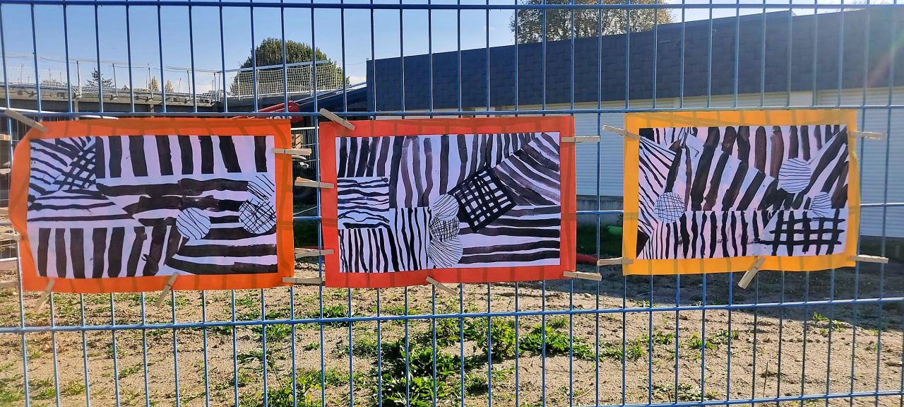 Les 4 classes de maternelle ont, elles aussi, pris part à la Grande Lessive du 16 octobre.