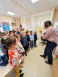 La chorale a repris dans les classes élémentaires avec Hélène, chef de chœur !