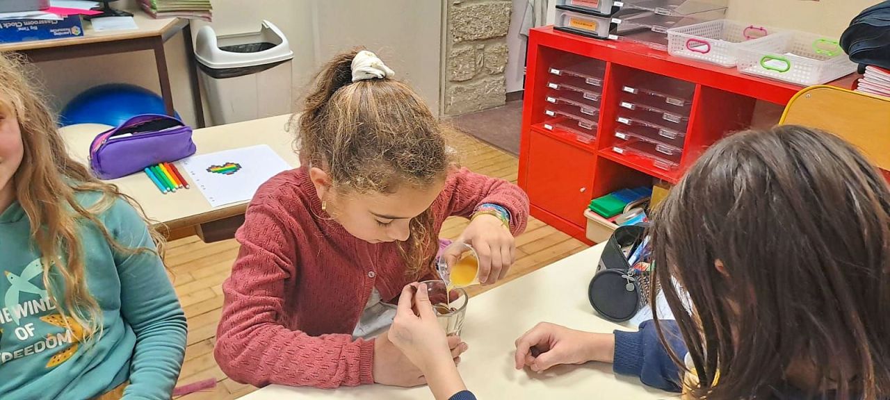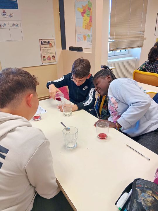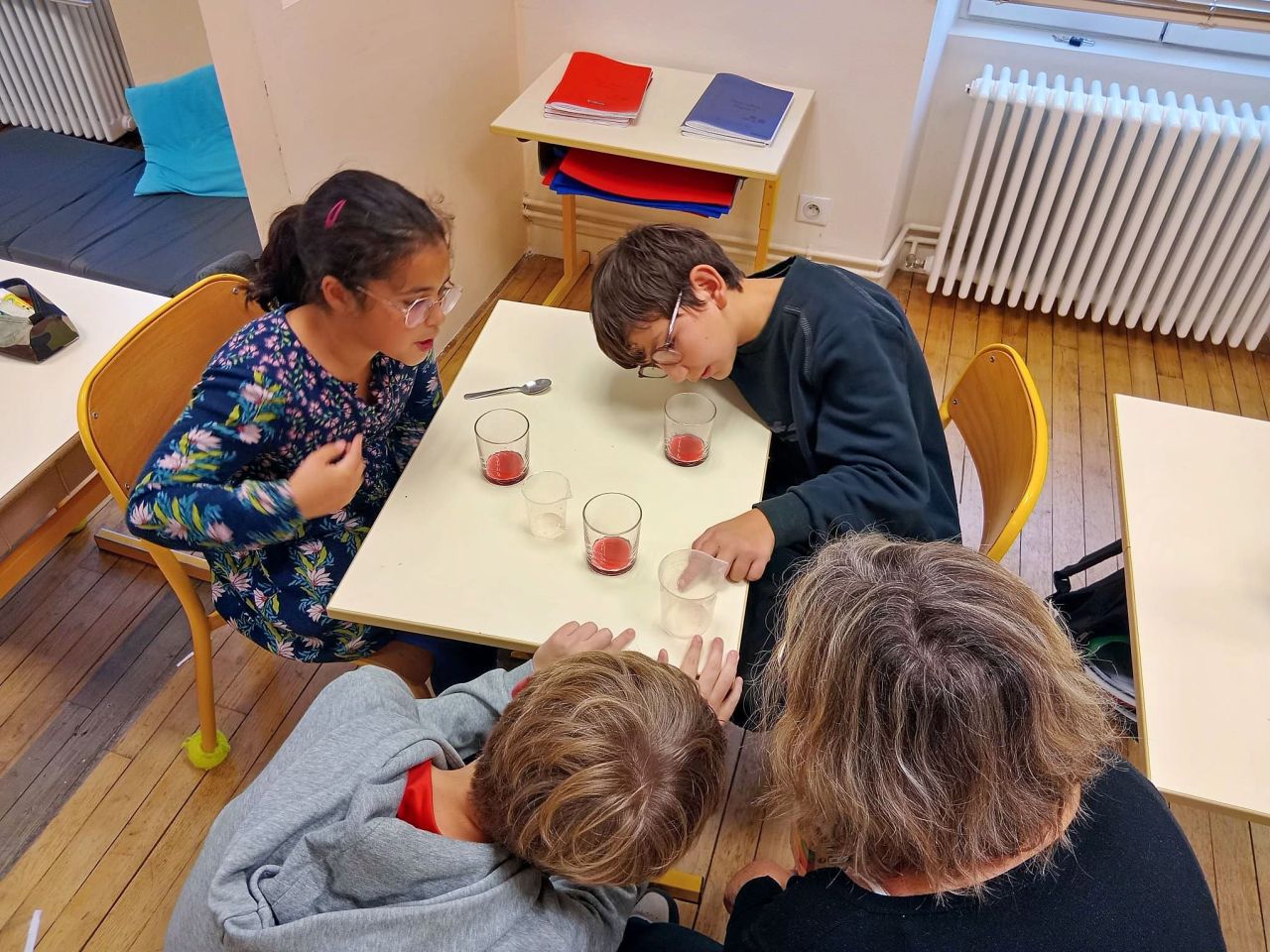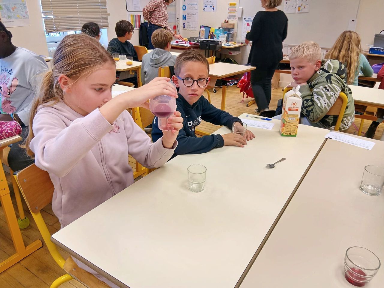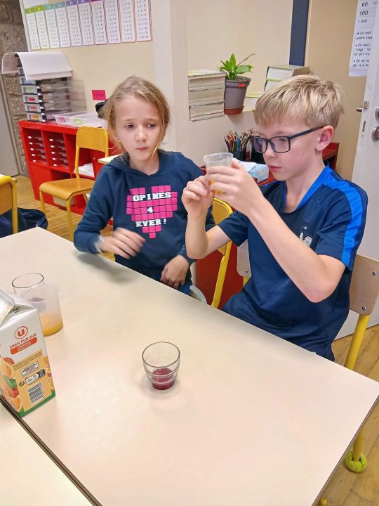 En sciences, afin d'introduire le chapitre sur les mélanges, les élèves de CM1-CM2 ont préparé de délicieux cocktails "arc-en-ciel". Mais pourquoi les liquides ne se mélangent pas? Est-ce de la magie?